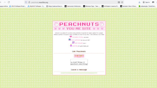 Love: my cats, feijoas, baking, interior design, matcha lattes, pixel art, sims 4, hiking, freshly washed sheets, minimalism, a fresh pedicure, collecting perfume